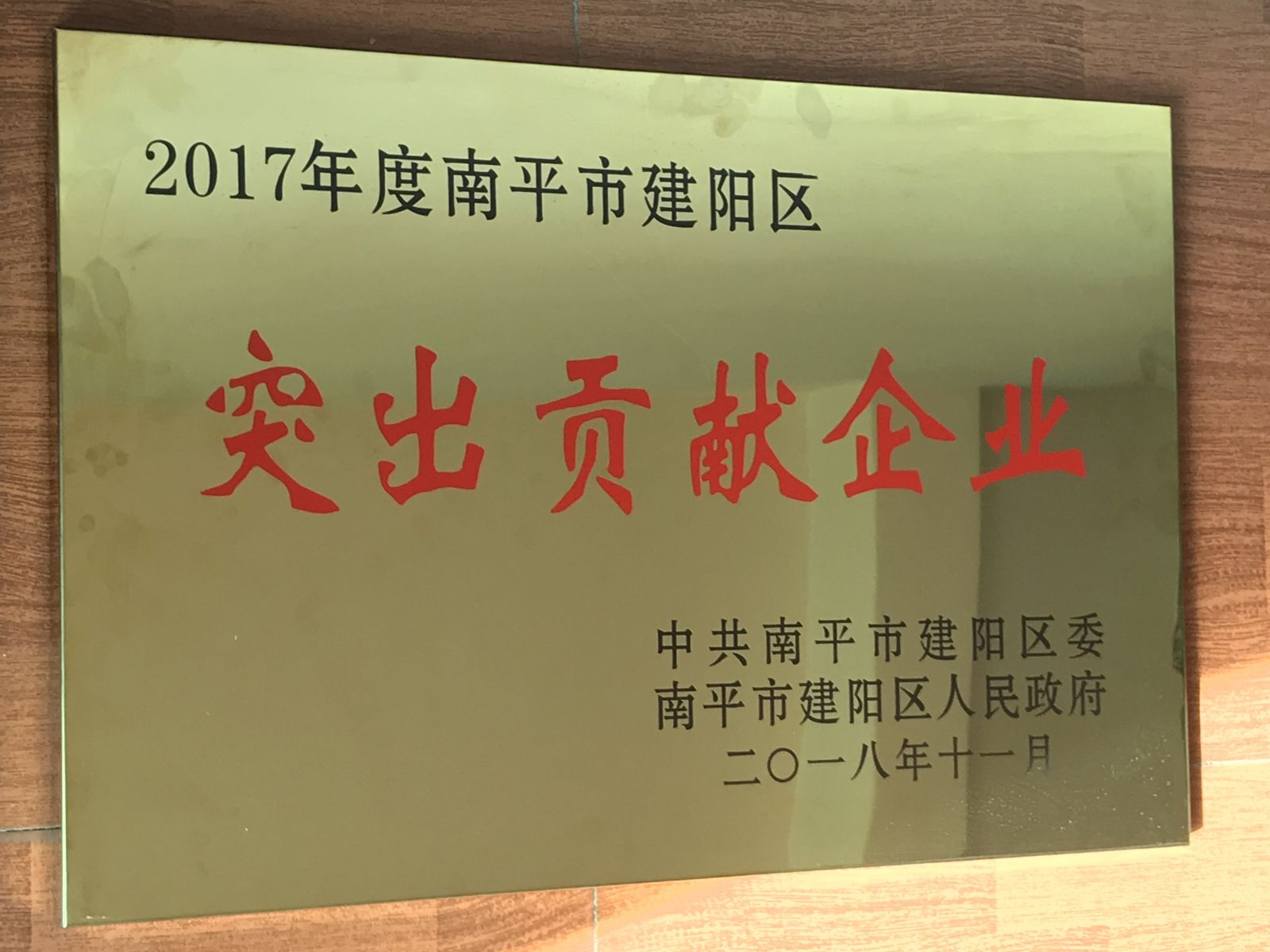 2018年11月22日下午,建陽區(qū)召開2018年度工業(yè)發(fā)展會議。我公司等12家企業(yè)被授予“2017年度建陽區(qū)突出貢獻企業(yè)”稱號,予以全區(qū)表揚并頒發(fā)牌匾。