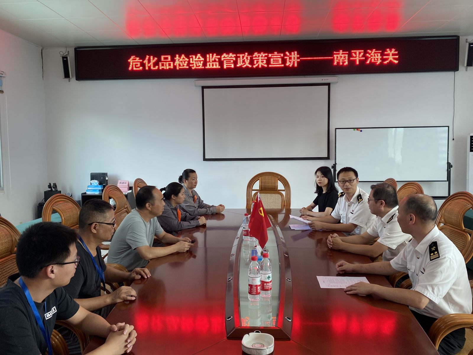 2021年07月20日上午10:00左右,南平海關(guān)副關(guān)長陳俊穎、南平海關(guān)查驗(yàn)科一科領(lǐng)導(dǎo)黃云好、林鼎杰一行蒞臨我司做?;窓z驗(yàn)監(jiān)管政策宣講、危化品業(yè)務(wù)交流及管理體系認(rèn)證審核。