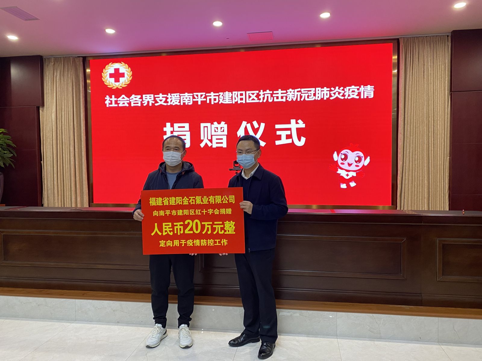 為了助力建陽區(qū)疫情防控,弘揚(yáng)社會(huì)正能量,2022年3月28日下午,我司向南平市建陽區(qū)紅十字會(huì)捐贈(zèng)20萬元人民幣,定向用于我區(qū)新型冠狀病毒感染的肺炎疫情防控工作,建陽區(qū)區(qū)長(zhǎng)王沖向我司授予捐贈(zèng)證書,感謝我司對(duì)紅十字公益事業(yè)的關(guān)心、支持與無私捐助,并合影留念,此次捐贈(zèng),彰顯了我司企業(yè)公民的社會(huì)責(zé)任,展現(xiàn)了新時(shí)代企業(yè)的形象。