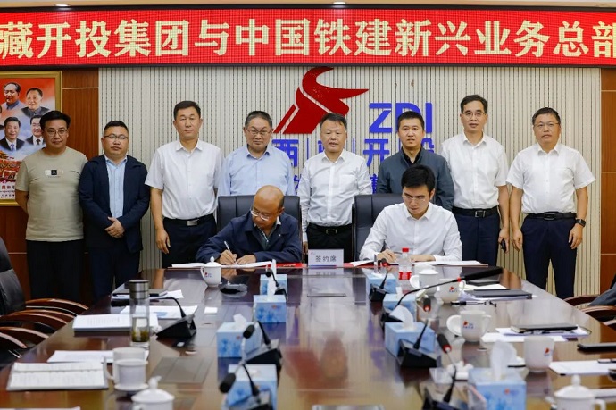 8月15日,西藏開發(fā)投資集團(tuán)有限公司黨委書記、董事長(zhǎng)祁騰武會(huì)見來訪的中國(guó)鐵建股份有限公司新興業(yè)務(wù)總部黨委書記、總經(jīng)理賈洪一行,雙方就加強(qiáng)溝通、深化合作等相關(guān)事宜座談交流并簽訂戰(zhàn)略合作協(xié)議。集團(tuán)公司領(lǐng)導(dǎo)陳焱罡、鄧強(qiáng),中國(guó)鐵建新興業(yè)務(wù)總部副總經(jīng)理李兢、中鐵十四局集團(tuán)副總經(jīng)理石宗濤等參加座談。