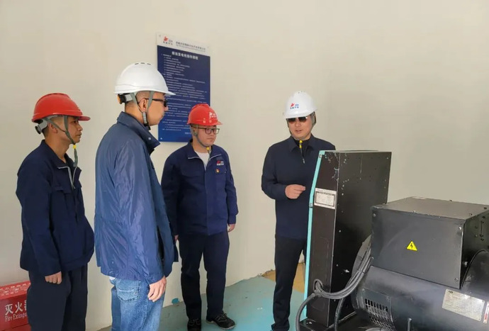 集團(tuán)黨委副書(shū)記、副董事長(zhǎng)、總經(jīng)理劉剛(右一)嘎堆水電站開(kāi)展安全生產(chǎn)檢查。