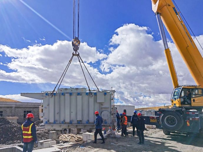 色尼區(qū)達(dá)嘎普獨立儲能項目svg預(yù)制艙吊裝。吳昊澄 攝