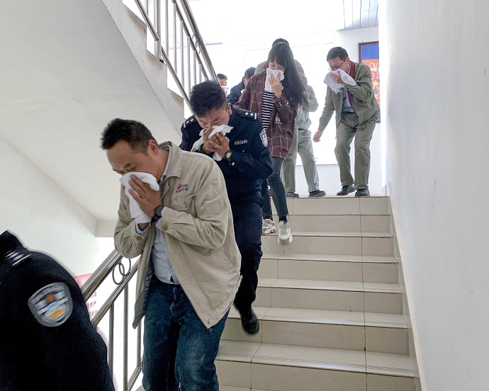 (演練火災(zāi)現(xiàn)場逃離 劉式花攝)