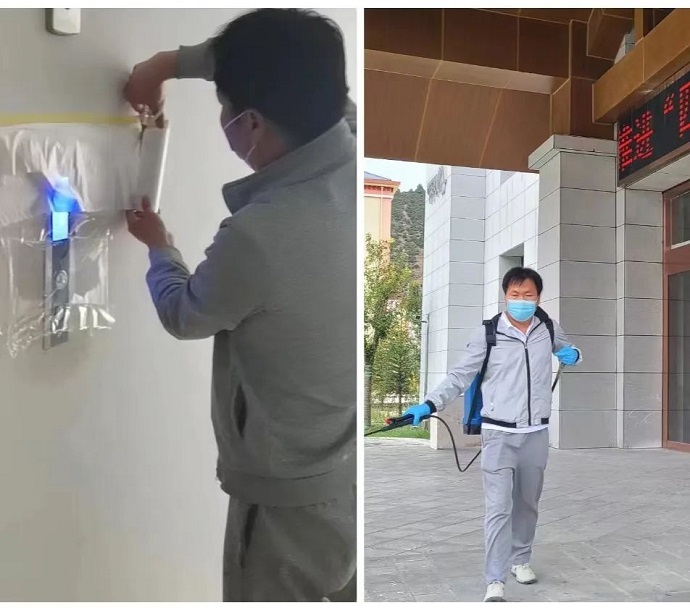 此次疫情發(fā)展伊始,酒店周邊已多處發(fā)生感染病例,距最近的高風(fēng)險(xiǎn)區(qū)域不到100米。孫海崗帶領(lǐng)部門人員,沖在“疫”線,堅(jiān)持每天對(duì)酒店各個(gè)區(qū)域進(jìn)行2次消殺,不留死角。由于酒店占地面積大,單體建筑分布較廣,完成一次全面徹底消殺用時(shí)需要2小時(shí)以上。孫海崗深知消殺工作的重要性,在工作過程中任勞任怨,埋頭苦干。