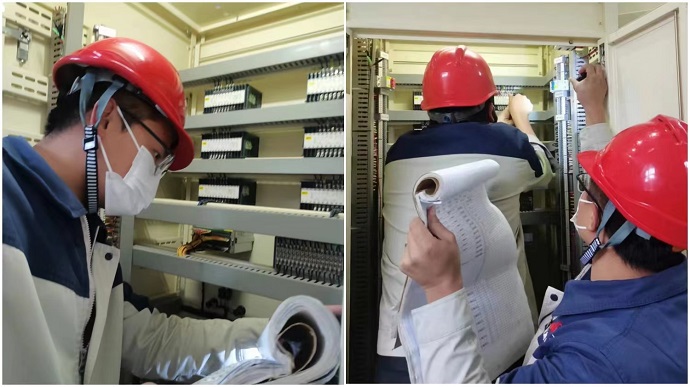 運(yùn)維主管帶領(lǐng)休息的運(yùn)維人員開展對水輪發(fā)電機(jī)一次調(diào)頻、PSS、繼電保護(hù)裝置、穩(wěn)控裝置、振蕩解列裝置、調(diào)度自動化裝置、通訊裝置參數(shù)和定值核對,現(xiàn)場壓板投入及方式投退核對,確保藏中電網(wǎng)異步聯(lián)網(wǎng)期間嘎堆水電廠孤網(wǎng)安全穩(wěn)定運(yùn)行。