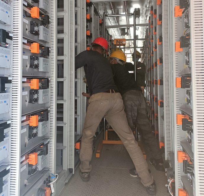 抓疫情防控是硬任務(wù),抓儲能建設(shè)亦是硬道理。9月3日,為保障儲能設(shè)備按期到廠,八宿光伏電站主動對接廠家,掌握設(shè)備運輸車輛軌跡,積極聯(lián)系各地防疫部門開具證明。自儲能項目開工以來,安排專人蹲守現(xiàn)場監(jiān)督儲能建設(shè),9月9日設(shè)備及配件陸續(xù)到廠后,及時成立驗收組對設(shè)備及配件進行到廠驗收。9月17日第一批電池艙到廠后,八宿光伏電站開啟“白+黑”工作模式,完成設(shè)備吊裝,具備單體調(diào)試條件。目前八宿光伏電站土建施工、一體機吊裝已全部完成,預(yù)計9月底具備涉網(wǎng)試驗條件。