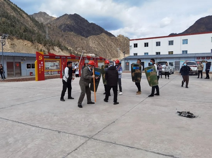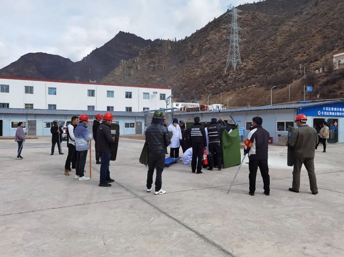 3月15日,果多水電公司與柴維鄉(xiāng)政府、柴維鄉(xiāng)派出所、柴維鄉(xiāng)衛(wèi)生院聯(lián)合開展反自焚、反恐怖襲擊應(yīng)急演練。