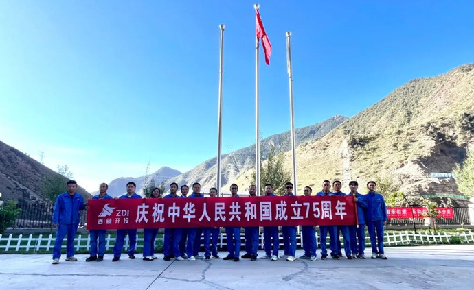 上午9時30分,全體干部職工身著整齊的工裝,在生活營地操場前整齊列隊,升旗儀式正式開始。升旗手邁著鏗鏘的步伐,護(hù)衛(wèi)著國旗走向國旗臺。在激昂的國歌聲中,五星紅旗冉冉升起,迎風(fēng)舒展。全體干部職工肅穆而立,面向國旗行注目禮,致敬偉大的祖國。