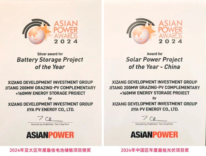 10月22日,2024年度亞洲能源大獎(2024 Asian Power Awards)獲獎名單在新加坡正式揭曉,由西藏開投吉雅光伏公司主導(dǎo)建設(shè)并運營的吉塘200MW+160MWh儲能牧光互補復(fù)合型光伏項目榮膺“2024年亞太區(qū)年度最佳電池儲能項目銀獎”和“2024年中國區(qū)年度最佳光伏項目獎”兩項大獎。