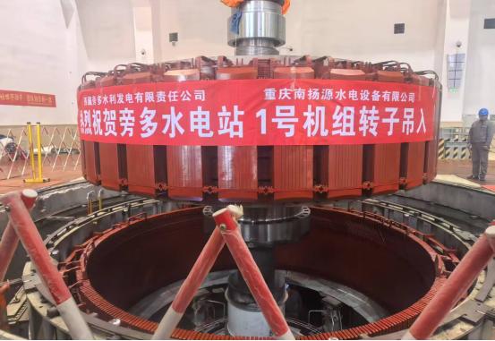 4月29日18:16,隨著現(xiàn)場(chǎng)指揮一聲令下,旁多水電站1號(hào)機(jī)組A級(jí)檢修現(xiàn)場(chǎng),重達(dá)186噸的轉(zhuǎn)子在大型起重設(shè)備的牽引下,緩緩上升并平穩(wěn)地落入指定位置,標(biāo)志著1號(hào)機(jī)組A級(jí)檢修全面進(jìn)入回裝階段。