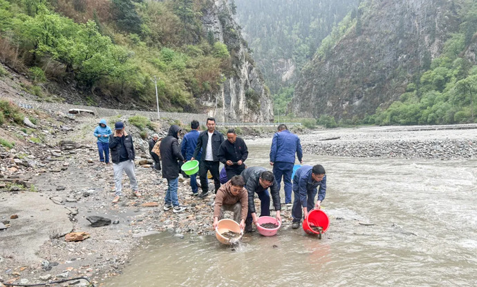 在放流活動(dòng)現(xiàn)場,共投放拉薩裸裂尻、異齒裂腹魚各三千余尾,將有效補(bǔ)充流域野生魚類資源,對改善水生生物種群、維系易貢藏布流域生態(tài)鏈完整具有重要意義。