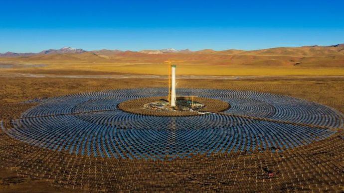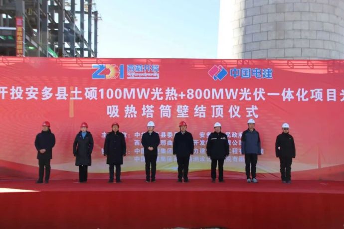 15日上午,西藏開投集團投資建設的全球海拔最高、西藏首個塔式光熱電站——西藏開投安多土碩100MW光熱+800MW光伏一體化項目吸熱塔順利結頂。吸熱塔從破土動工到主體完工僅用233天,創(chuàng)下同期同類型項目結頂最快紀錄。