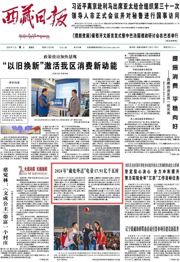 西藏日報丨2024年“藏電外送”電量17.91億千瓦
