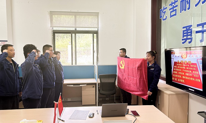 活動伊始,莊嚴的升國旗、唱國歌儀式在嘎堆水電公司生活營地舉行,鮮艷的五星紅旗在全體黨員和員工的注目禮中冉冉升起,雄壯的國歌聲響徹云霄。接著,嘎堆水電公司黨支部組織新黨員在黨員活動室舉行了入黨宣誓儀式,并開展了重溫入黨誓詞活動。隨后,嘎堆水電公司黨支部書記謝鵬為大家上了一堂生動的專題黨課。黨課圍繞黨的創(chuàng)新理論、黨的基本知識、黨的百年奮斗史、新時代偉大成就等方面展開,引導黨員們奮進新征程、建功新時代。最后,黨員干部職工齊聚一堂,暢談黨的光輝歷程和豐功偉績。大家紛紛表示,立足崗位比貢獻,進一步發(fā)揮好黨組織的戰(zhàn)斗堡壘作用和黨員的模范表率作用。