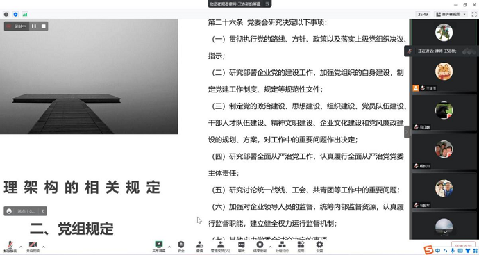 培訓(xùn)圍繞集團(tuán)公司章程規(guī)定、部門職責(zé)、三重一大規(guī)定三個(gè)方面作了系統(tǒng)講解,著重從合法、合規(guī)性方面進(jìn)行了分析。此次培訓(xùn),有效促進(jìn)了制度建設(shè)工作的法治化和規(guī)范化。下一步,集團(tuán)公司將結(jié)合上級要求,持續(xù)加強(qiáng)制度管理體系的建設(shè),優(yōu)化管理流程,筑牢集團(tuán)公司高質(zhì)量發(fā)展基石。
