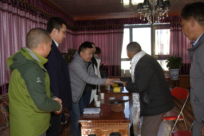 柳梧村村委達(dá)瓦書記對(duì)大家的到來表示熱烈的歡迎,對(duì)西藏開投集團(tuán)組織開展這項(xiàng)工作表示贊賞。他說:“西藏開投集團(tuán)是區(qū)管國有企業(yè)中第一家組織在職黨員進(jìn)我們社區(qū)開展慰問的企業(yè),意義重大,效果明顯。西藏開投集團(tuán)成立雖晚,但在積極參與社會(huì)主義新西藏建設(shè)中邁的步伐很大,工作做的實(shí)在,體現(xiàn)了西藏開投集團(tuán)的責(zé)任擔(dān)當(dāng)。通過今天的活動(dòng),不但加深了雙方的熟悉和了解,而且也讓柳梧村的牧民百姓,尤其是受到西藏開投集團(tuán)特殊慰問關(guān)懷的2戶老黨員更加感受到了黨的溫暖和關(guān)愛,更加會(huì)珍惜這個(gè)來之不易的幸福生活”。