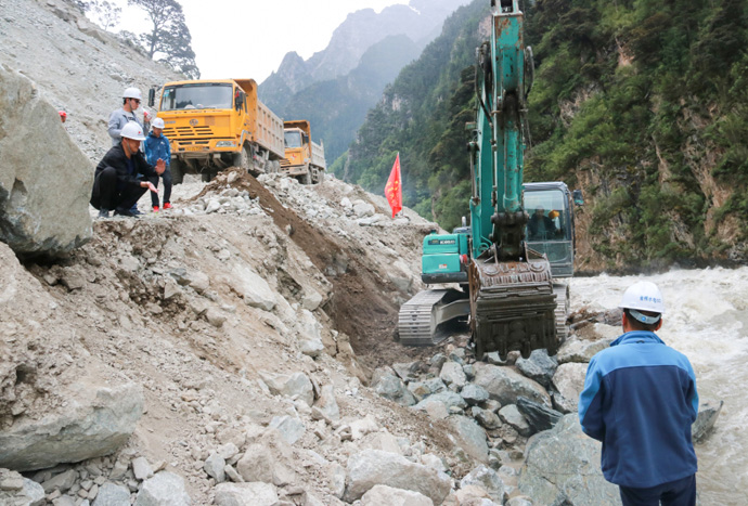 截至7月8日12時,地方政府和我公司及各參建單位共組織投入裝載機、挖掘機、工程車等機具200多臺次,投工投勞800余人次。在地方政府的大力支持下、在金橋支部黨員突擊隊的帶動下、在所有搶修人員的共同努力下,嘉黎縣至金橋水電站公路已基本搶通,電站建設的物資陸續(xù)運至現(xiàn)場,當?shù)厝罕娚钴囕v緩慢通過,沿途經(jīng)過的貨運車輛、越野車輛紛紛減速鳴笛向飄揚的共產(chǎn)黨員突擊隊隊旗致敬,向所有參與搶修公路的人員致謝。