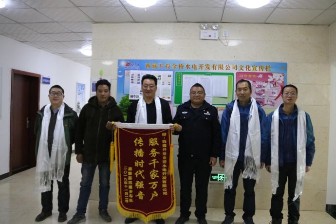 12月4日,尼屋鄉(xiāng)派出所副所長(zhǎng)多吉帶領(lǐng)尼屋鄉(xiāng)扶貧車隊(duì)代表將“服務(wù)千家萬(wàn)戶 傳播時(shí)代強(qiáng)音”錦旗遞送到西藏開(kāi)投金橋水電開(kāi)發(fā)有限公司(以下簡(jiǎn)稱“金橋公司”)副總經(jīng)理李輝手中,表達(dá)對(duì)金橋公司的深深謝意。