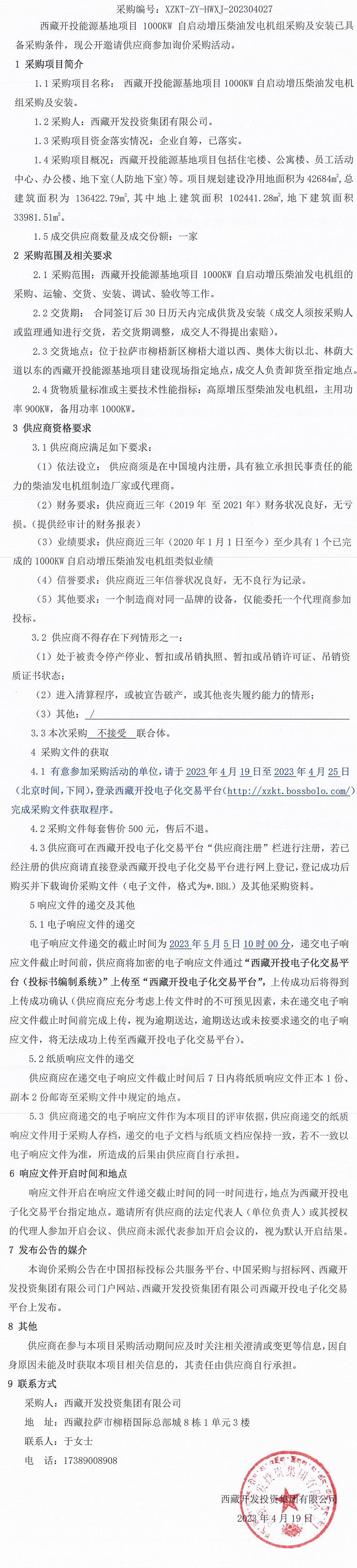 發(fā)電機(jī)組采購及安裝采購公示
