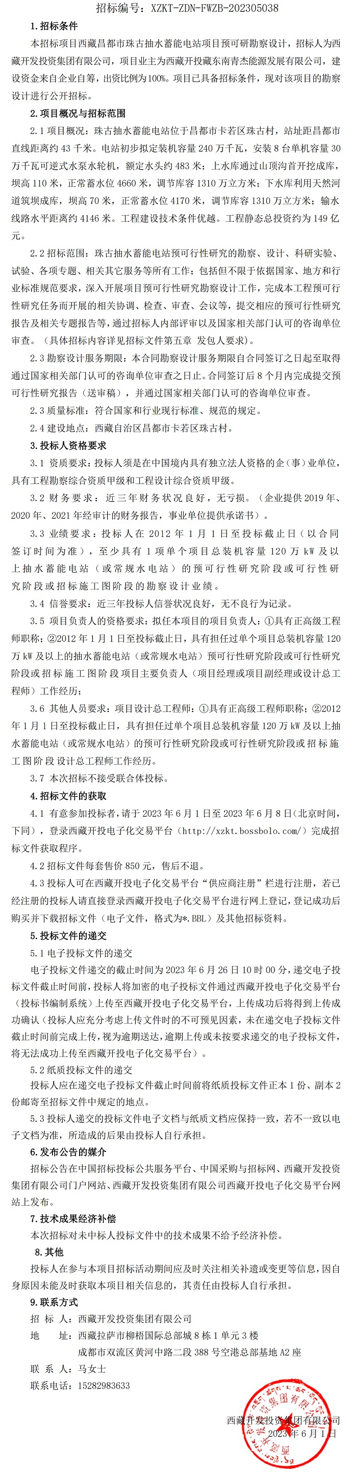 西藏昌都市珠古抽水蓄能電站項(xiàng)目預(yù)可研勘察設(shè)計(jì)招標(biāo)公告
