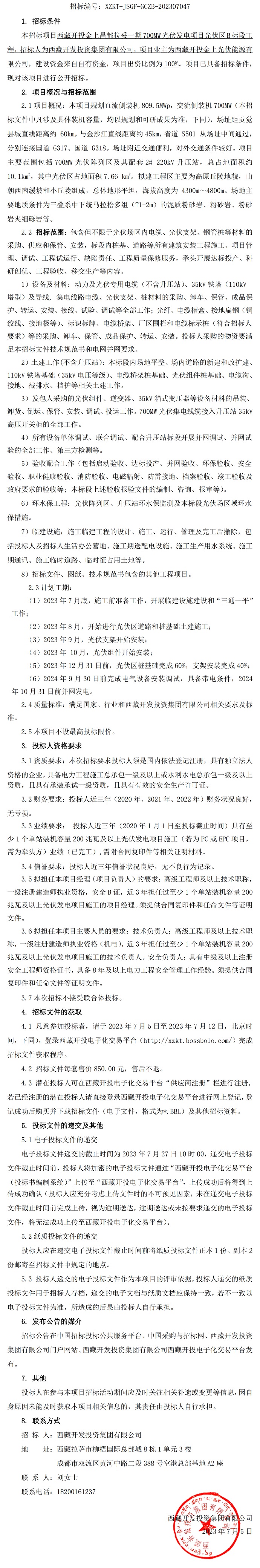 光伏區(qū)B標(biāo)段工程招標(biāo)公告