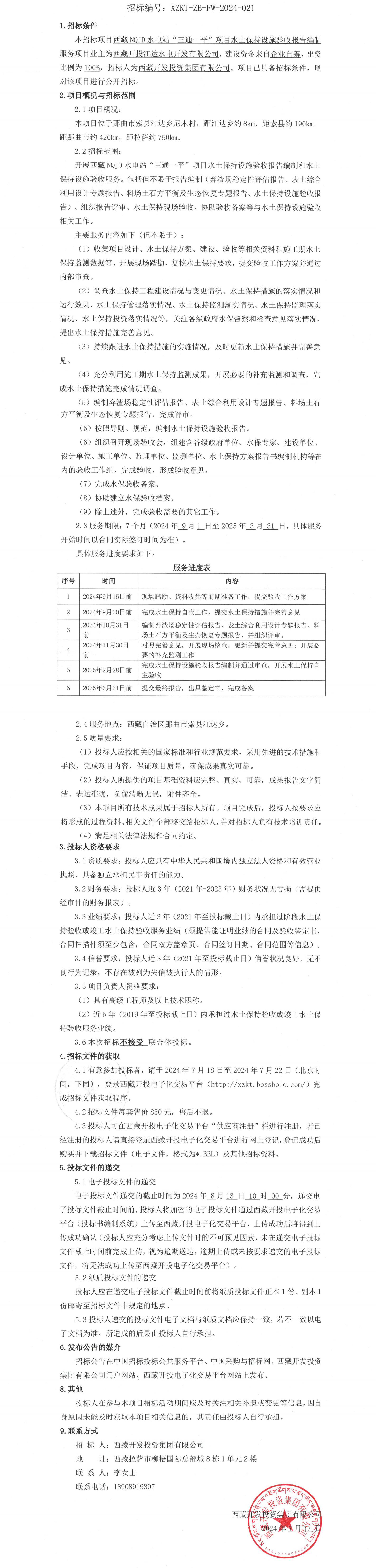 西藏NQJD水電站“三通一平”項目水土保持設施驗收報告編制服務招標公告