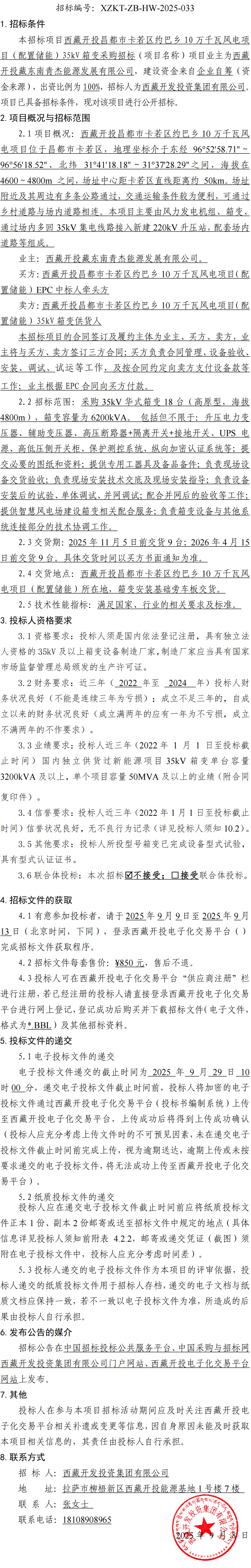 西藏開投昌都市卡若區(qū)約巴鄉(xiāng)10萬千瓦風(fēng)電項(xiàng)目(配置儲(chǔ)能)35kV 箱變采購招標(biāo)公告