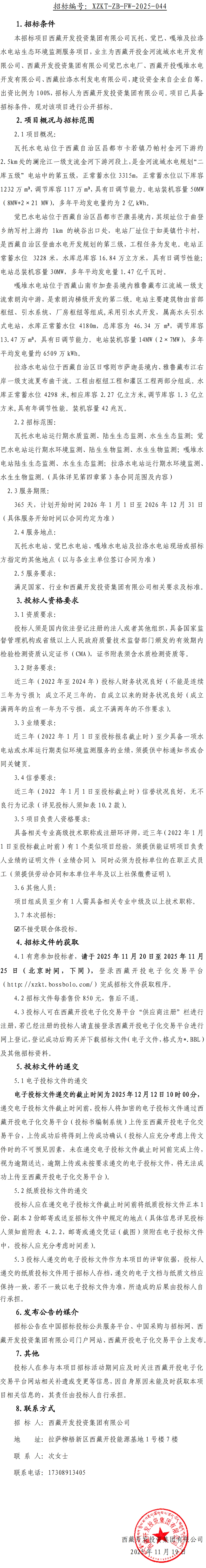 西藏開發(fā)投資集團有限公司瓦托、覺巴、嘎堆及拉洛水電站生態(tài)環(huán)境監(jiān)測服務(wù)招標公告