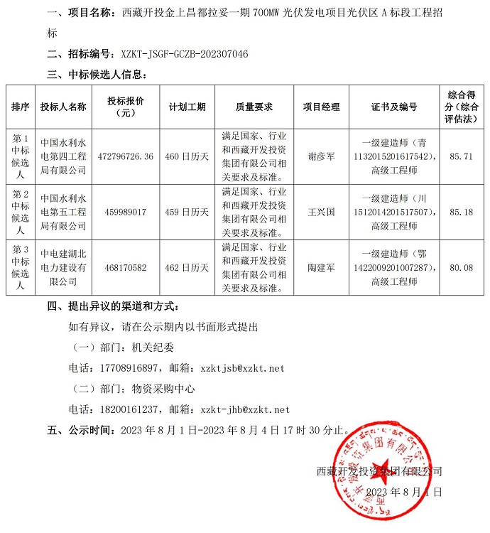 中標候選人公示