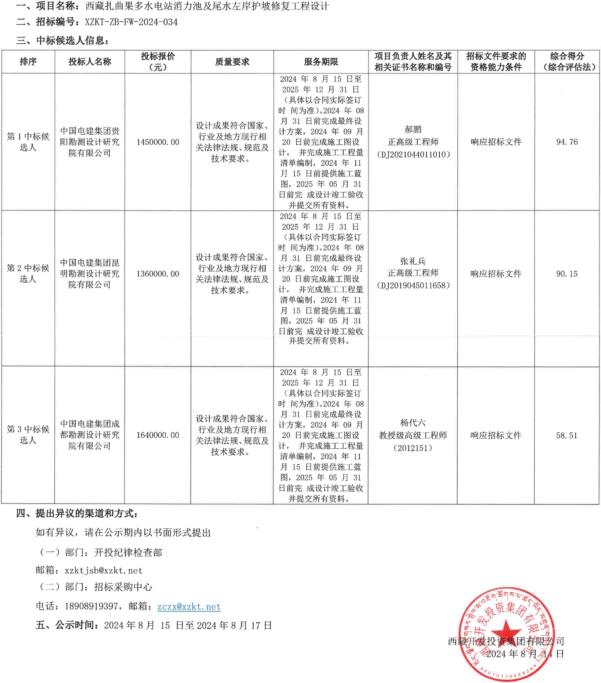 中標(biāo)候選人公示