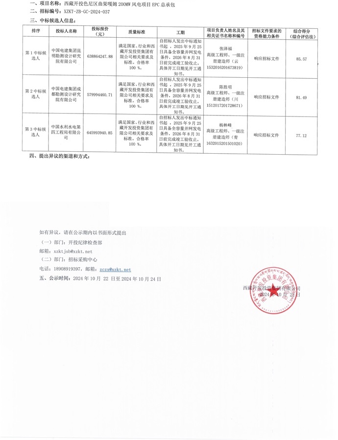 中標(biāo)候選人公示